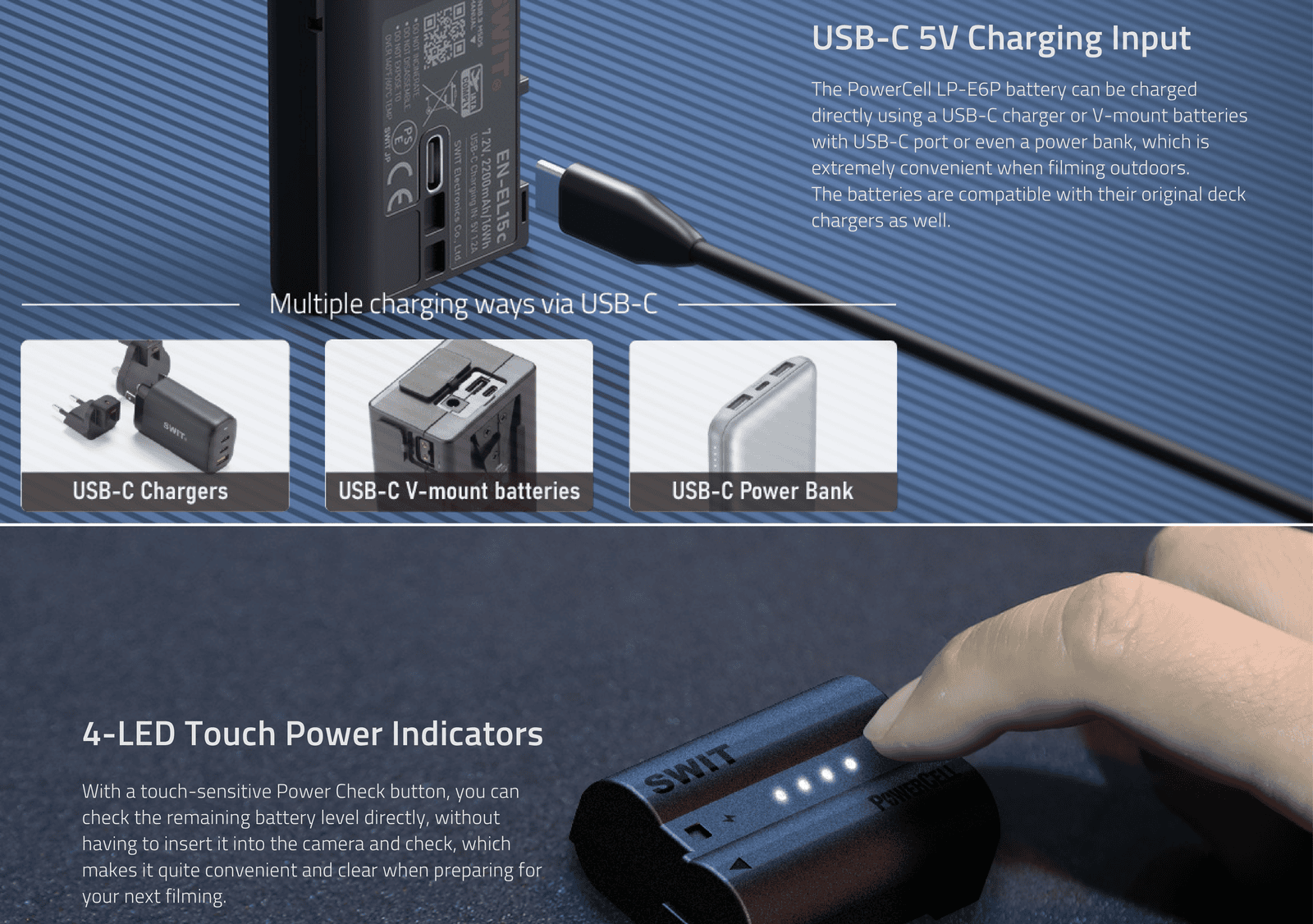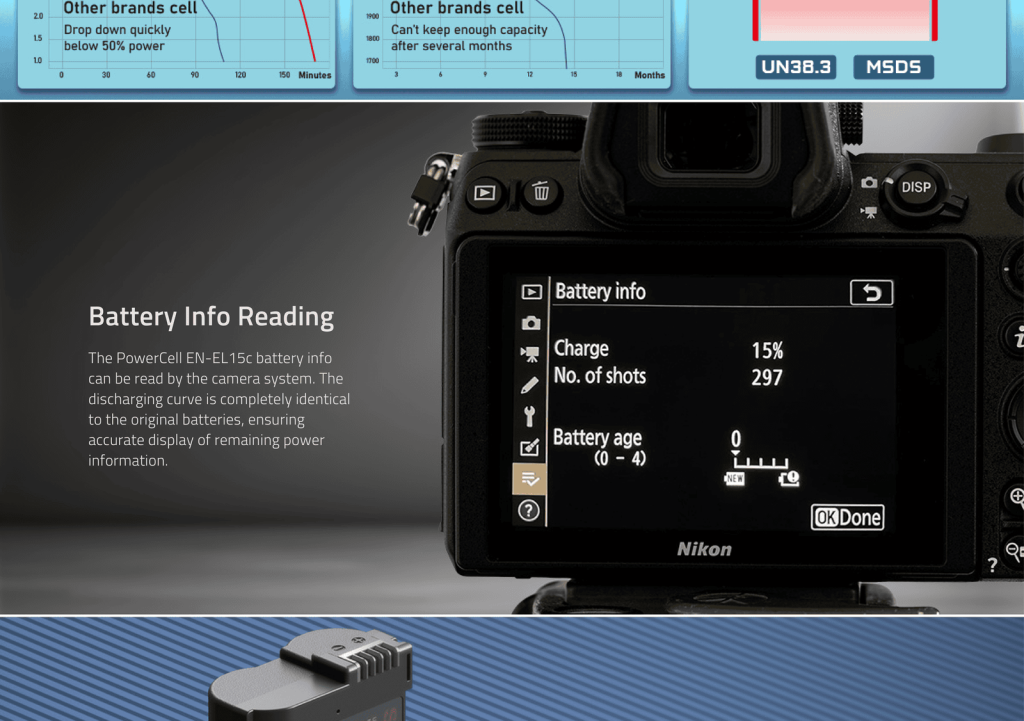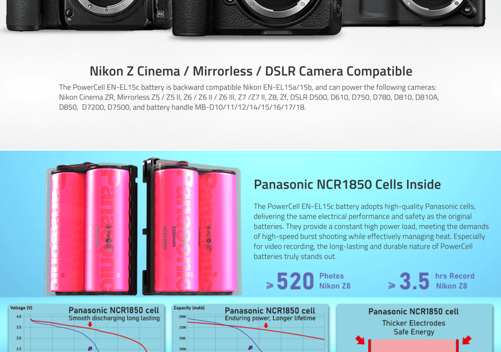PowerCell EN-EL15c | USB-C EN-EL15c 16Wh DC battery Outlasts the Originals, with Status Indicators, for DSLR/Mirrorless e.g. Nikon Z8, Z9, ZR,Z5II cameras