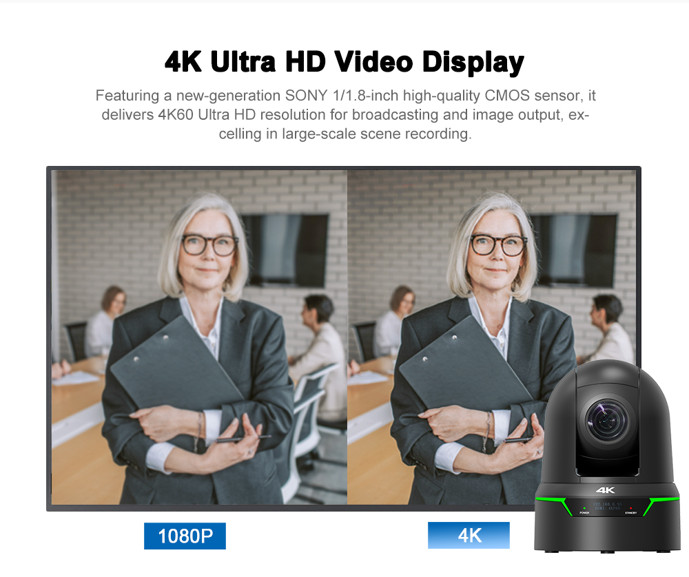 Equipped with a 25x ultra-high-definition optical lens and supporting the mainstream horizontal viewing angle of 59.2°, it can meet the needs of more scenes such as video conferencing in large auditoriums and blackboard writing in lecture theaters to restore true details.