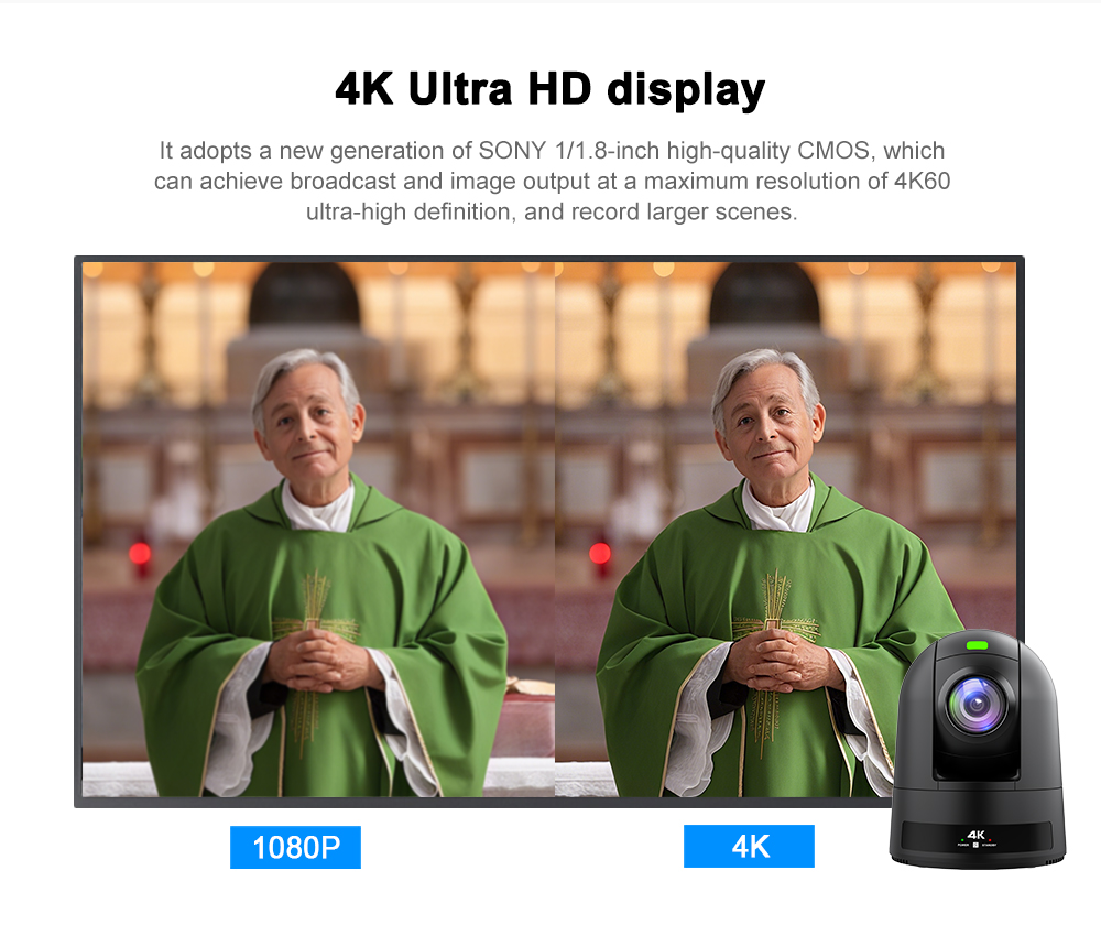 It adopts a new generation of SONY 1/1.8-inch high-quality CMOS, which can achieve broadcast and image output at a maximum resolution of 4K60 ultra-high definition, and record larger scenes.