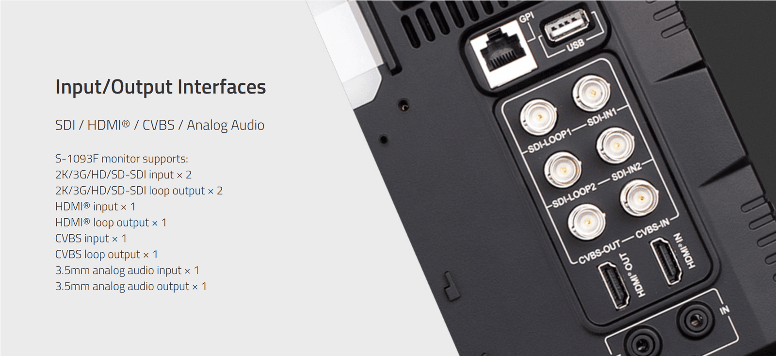 S-1093F | 9-inch On camera LCD monitor, no plate