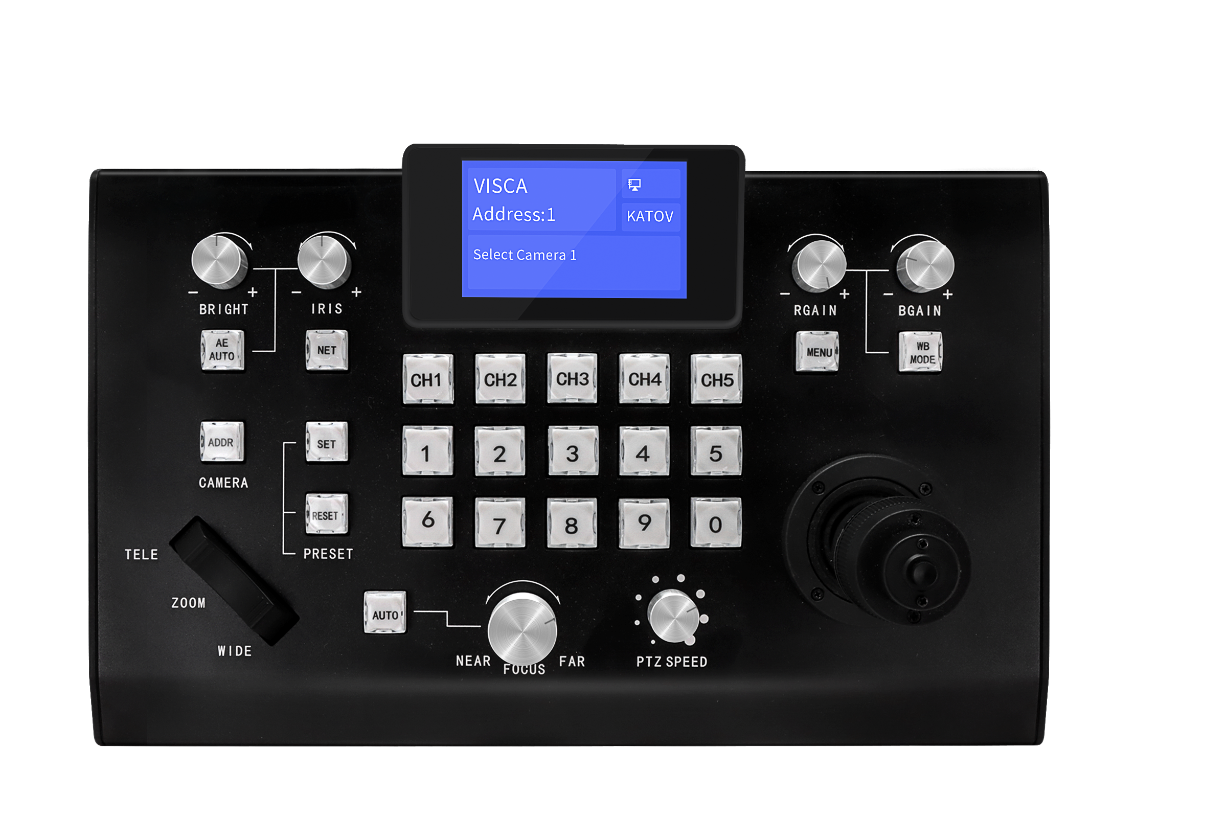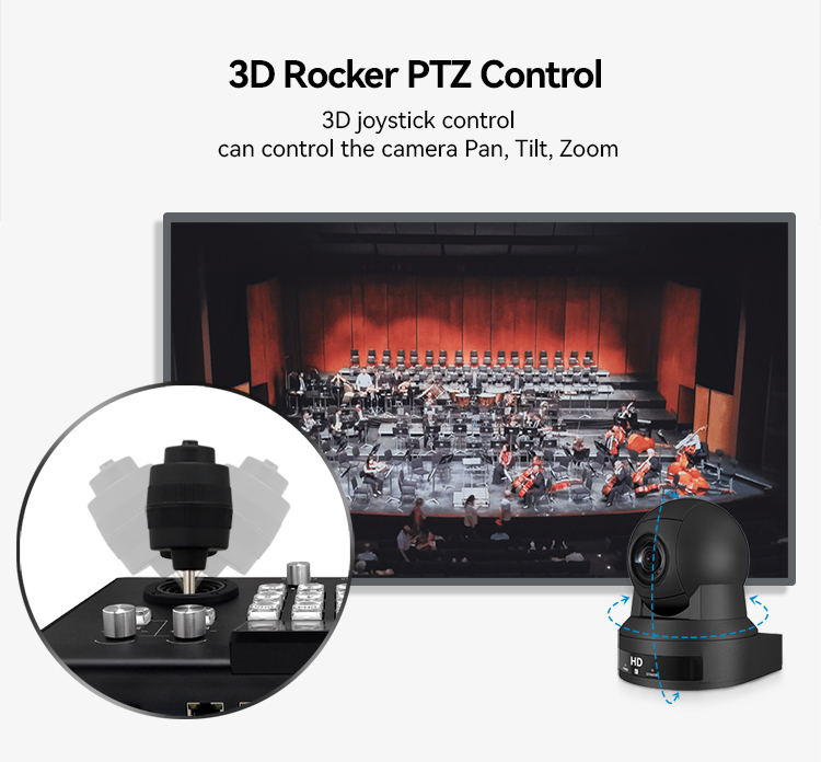 【Integrated 3D joystick, can control the camera: Pan, Tilt, Zoom】
